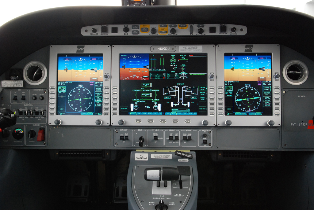 Above Eclipse 500 Cockpit photo by hyku on Flickr. Photo Released under a Creative Commons License